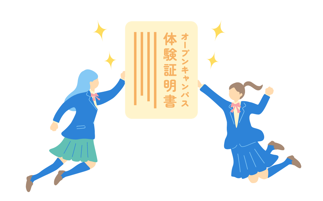 オープンキャンパスにて、「学科プログラム」にご参加いただくことで、検定料が減額になるオープンキャンパス体験証明書を発行いたします!