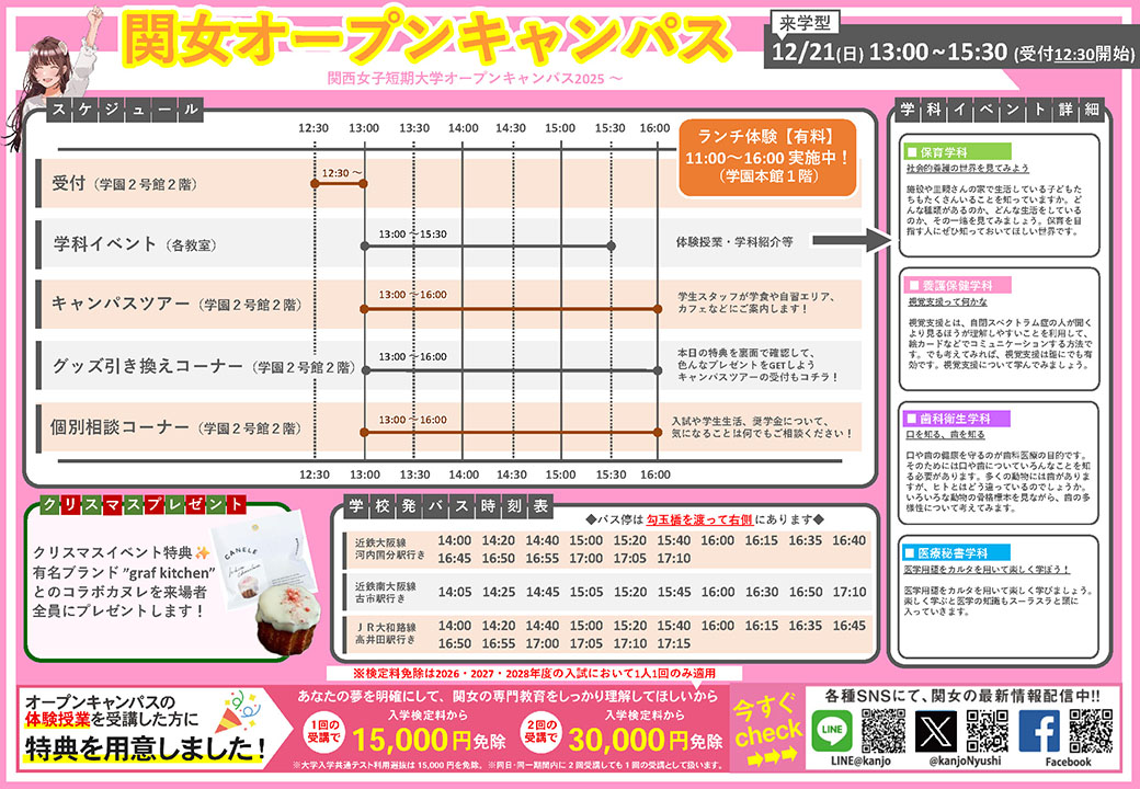 当日は駅↔関女の無料送迎バスを