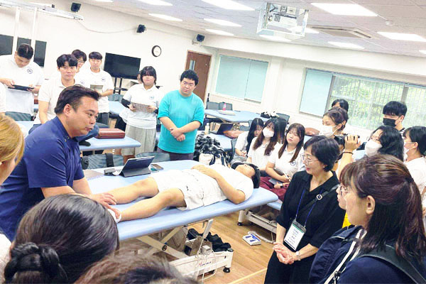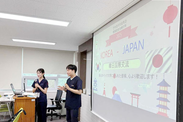 二日目は韓国蔚山(ウルサン)市にある春海保健大学校へ訪問し、学科見学や学生交流を行いました。学科見学では、放射線科における妊婦向けのエコー検査機器など、特色ある設備を多数ご紹介いただきました。学生交流では、春海保健大学の学生たちが用意してくれたゲームを実施し、楽しい時間を過ごしました。
