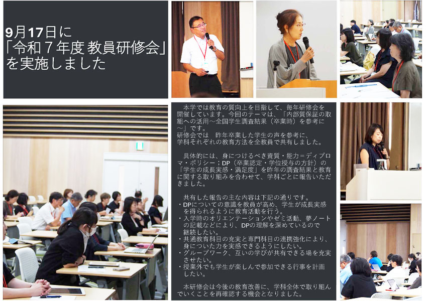 関西女子短期大学HOME > 新着情報 > 2025年 新着情報 > 令和7年度 教員研修会を実施しました