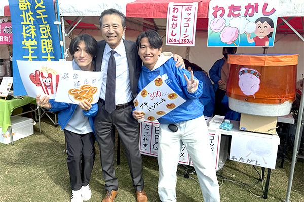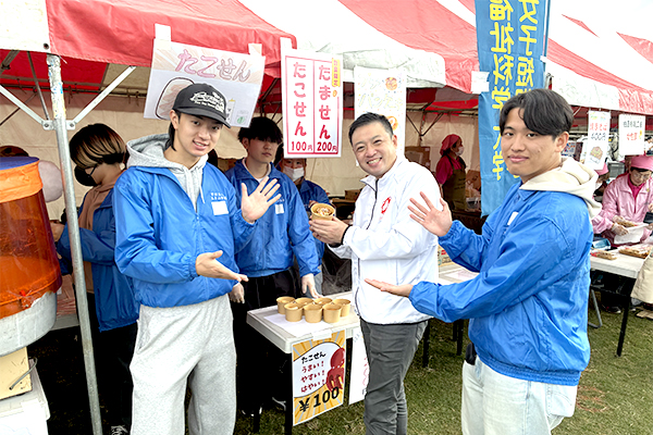 地域連携クラブの学生メンバーは、お揃いの「感恩」ジャケットを着用し、柏原市の運営補助や地域連携クラブのブースで、わたがし、ポップコーン、ミニパンケーキ、たこせんを販売しました。