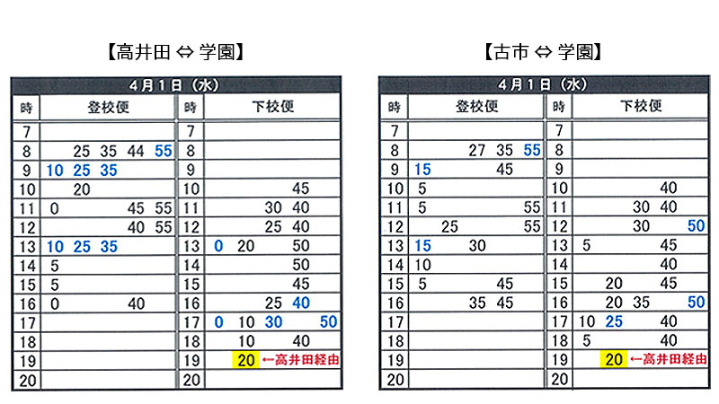 関西女子短期大学HOME > 新着情報 > 2026年 新着情報 > 【新入生の皆さんへ】令和8年度 入学宣誓式当日のスクールバス時刻表について